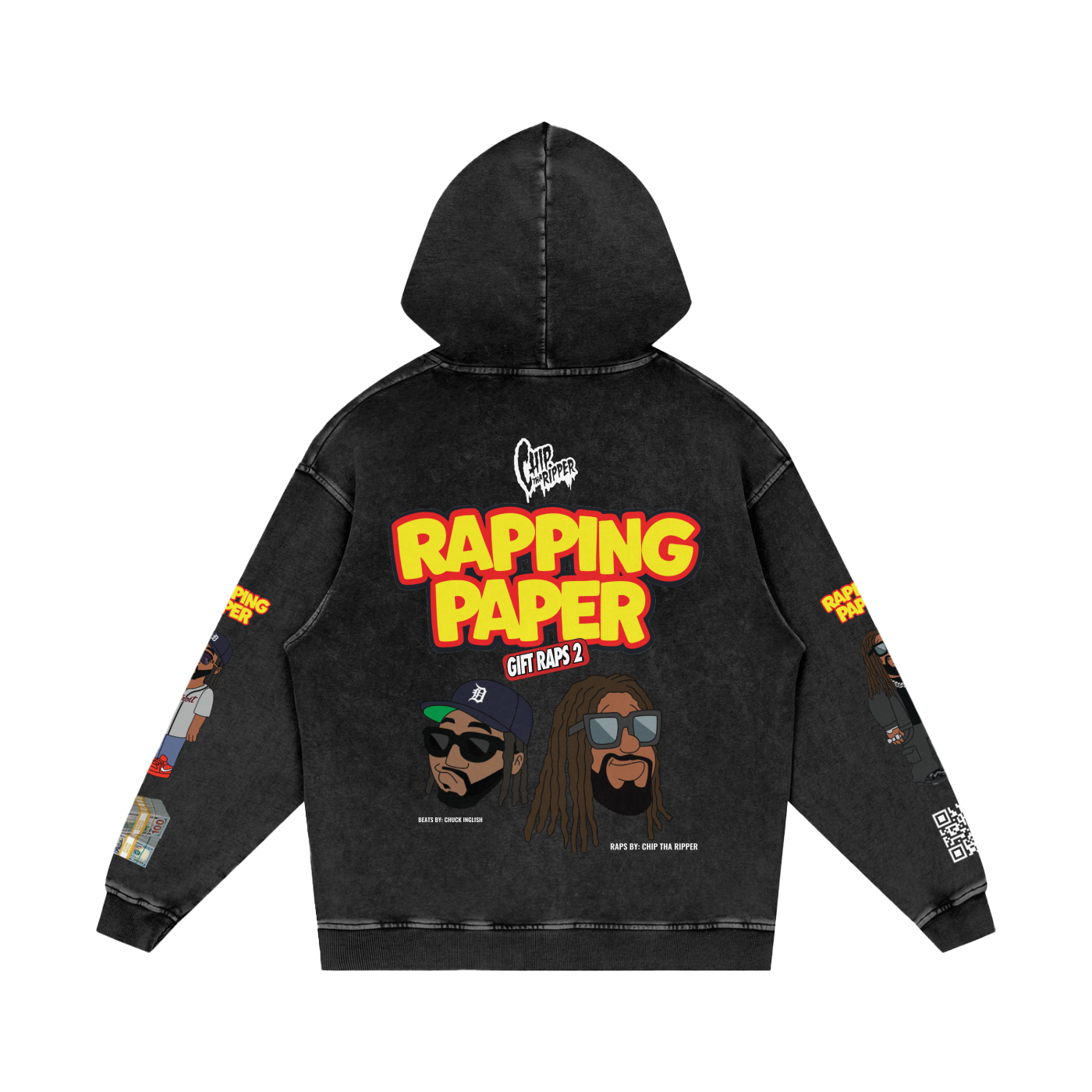 Rapping Paper Vintage Washed Frayed-Hem Hoodie