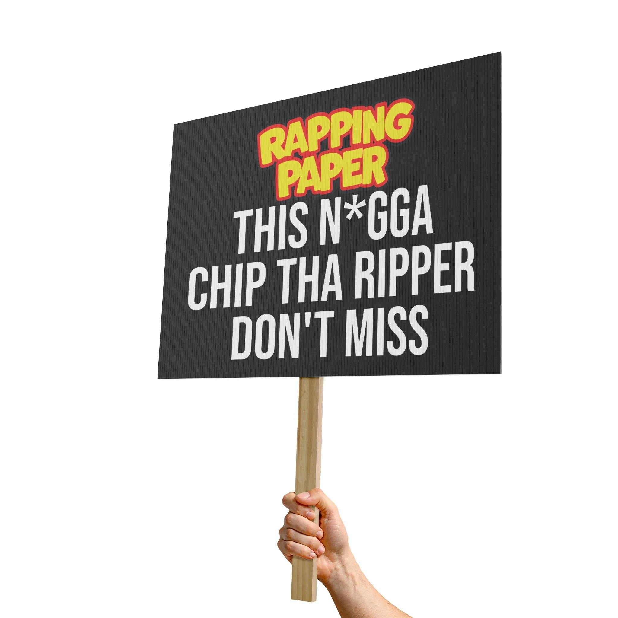 This hand-held CHIP DON'T MISS Rally Placard/protest sign brings your message to the streets with clarity and durability. Printed on fluted polypropylene with UV inhibitors and Greenguard UL certified water-based inks, the 18" x 24" panel resists fading, water, and stains so your words stay bold through rallies and outdoor events. The radiata pine handle attaches easily with double-stick tape—just remove the adhesive backer and press to secure—giving you a sturdy grip for marching or holding up at speeches. One-sided printing keeps the front crisp and readable while the lightweight construction makes it easy to carry for hours. Use it for demonstrations, rallies, community events, or any gathering where your voice needs to be seen.
